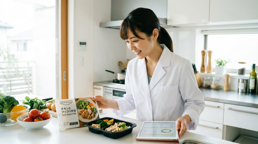 - 冷凍弁当(マッスルデリ):原材料表示が確認でき、食事内容を一定に保ちやすい